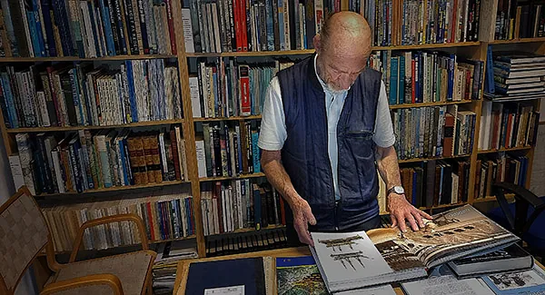 Niels Buhl med boggaven i laugets maritime bibliotek.