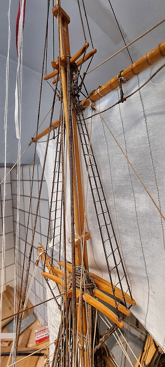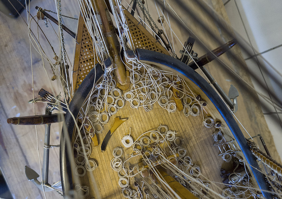 Modellen er udført 1902 af Skibsbygger O. Dørge, Ornamenteringen af Billedskærer S. Blichfeldt og Rigningen af Skibsbygger F. Bjørneboe.